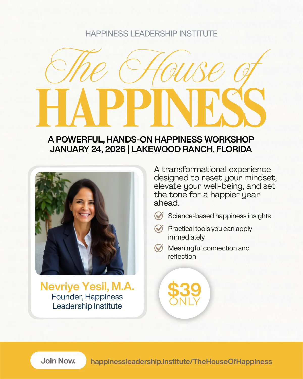 Transform your life through science-based happiness tools. Join Nevriye Yesil, M.A., international happiness expert, on a journey to lasting wellbeing and authentic leadership.